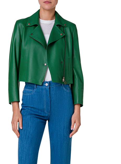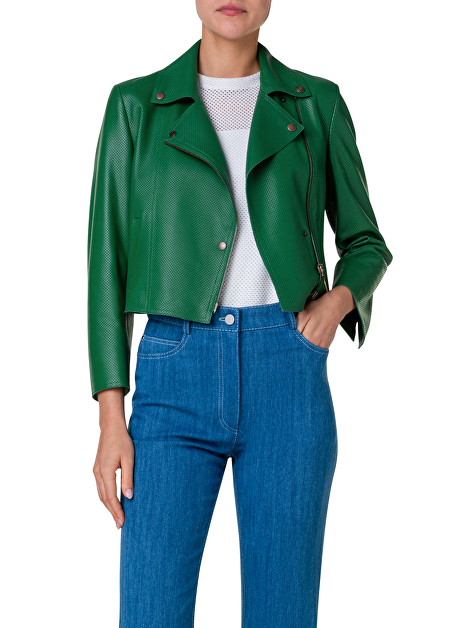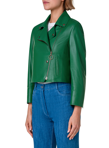 Biker jasje kort groen leder