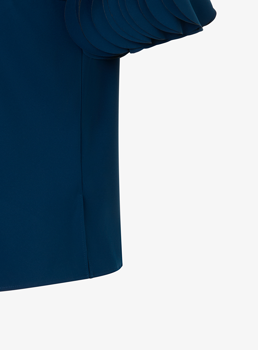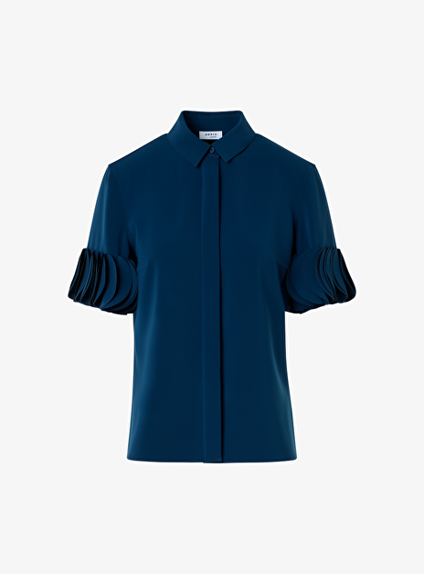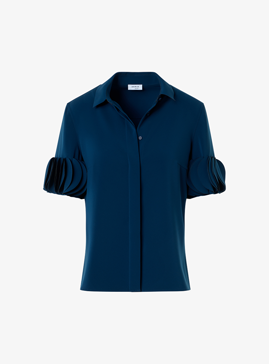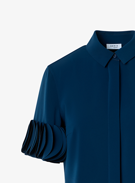 Blouse blauw met sier cirkels op mouwen