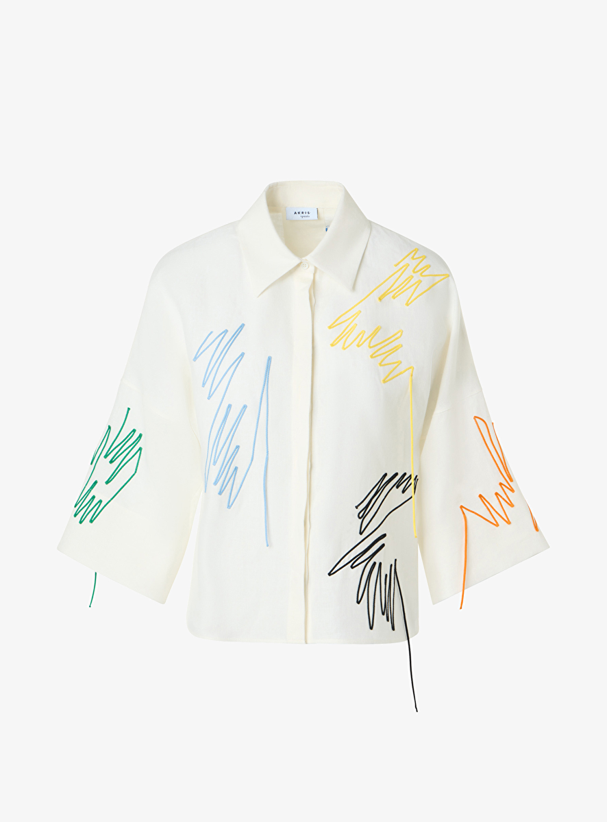 Blouse wit met decoratief gekleurde slierten