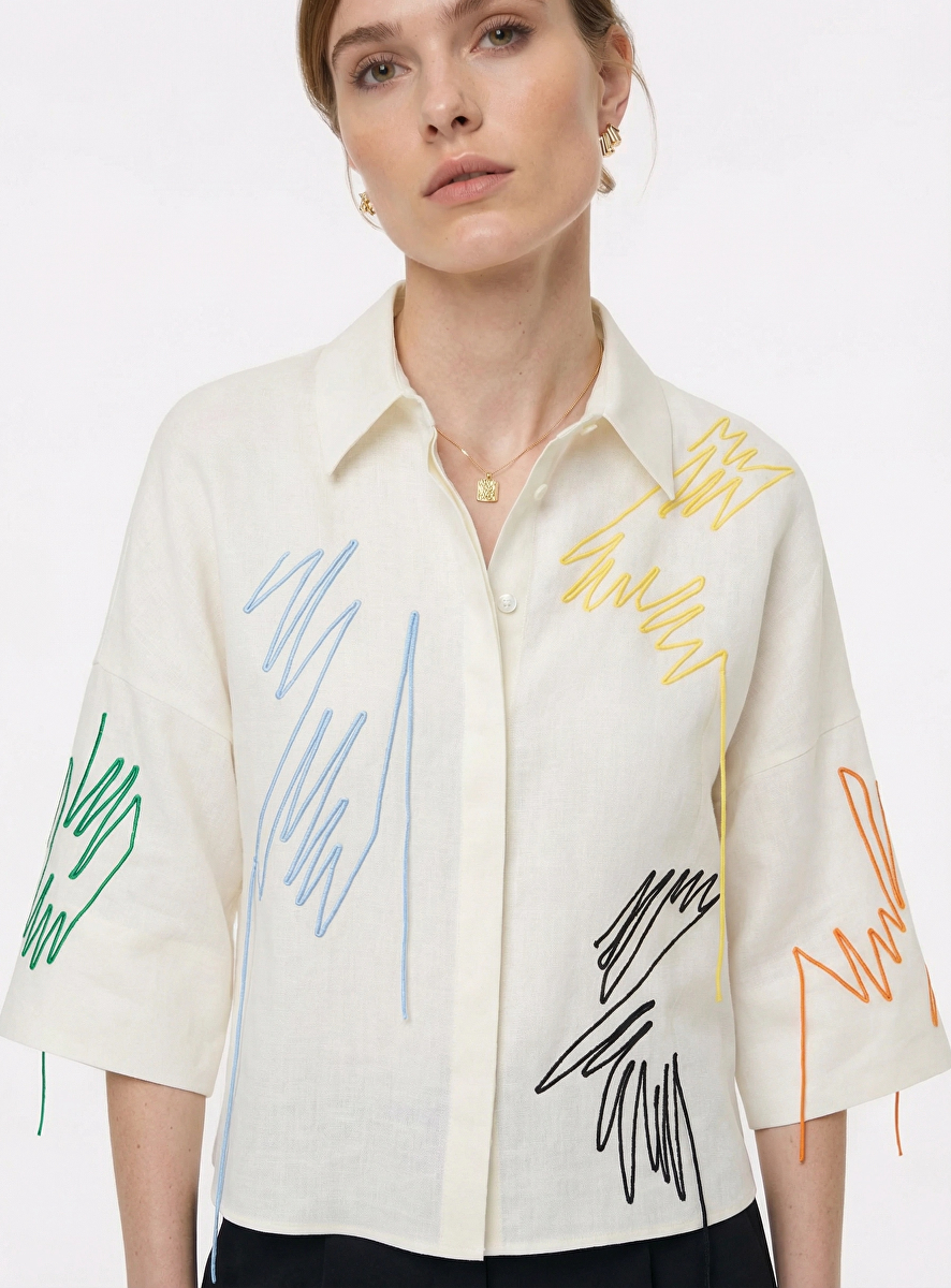 Shirt wit met gekleurde decoratie