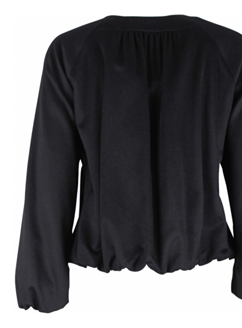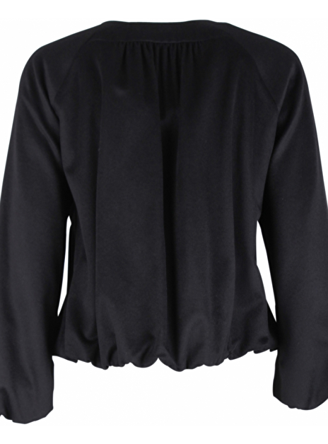 Jas met ballonvorm lijfje en mouwen, 3 grote blinde drukknopen en ronde hals. Steekzakken. Gevoerd.