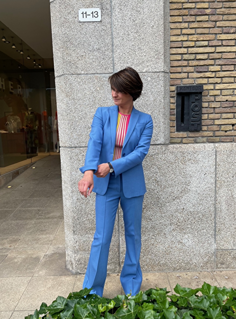 Samenstelling: 63% polyester 27% viscose 7% katoen 3% elastan. Voering: 100% cupro.
