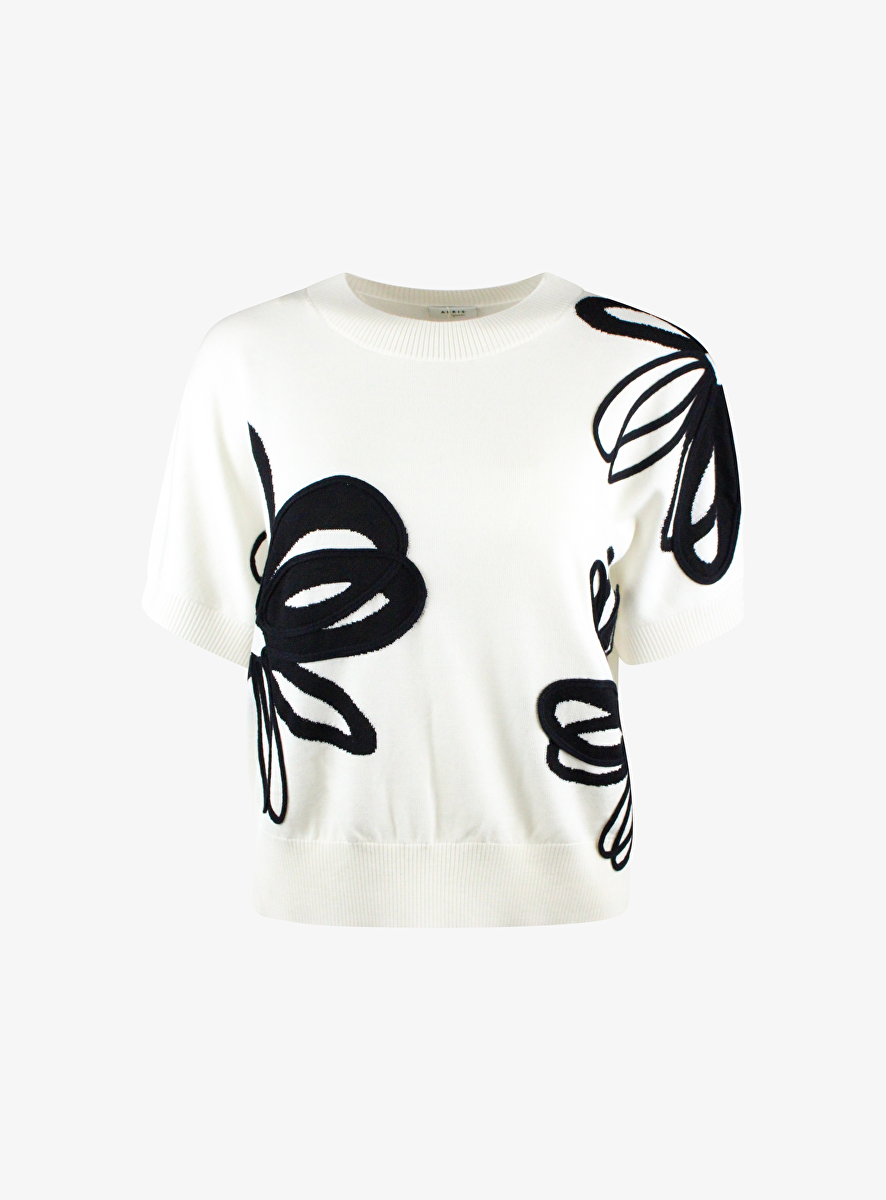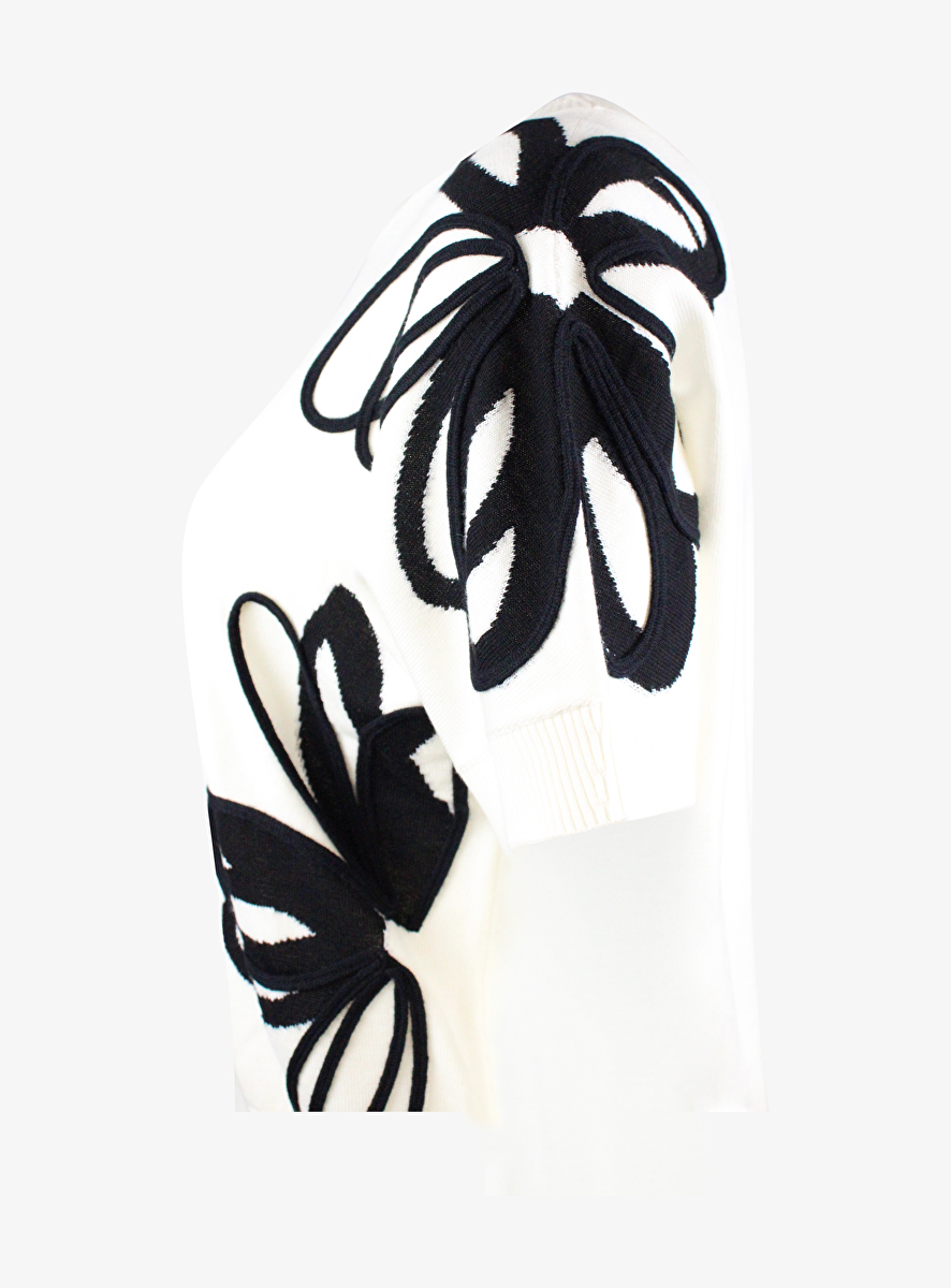 Pull met opgestikte bloemen