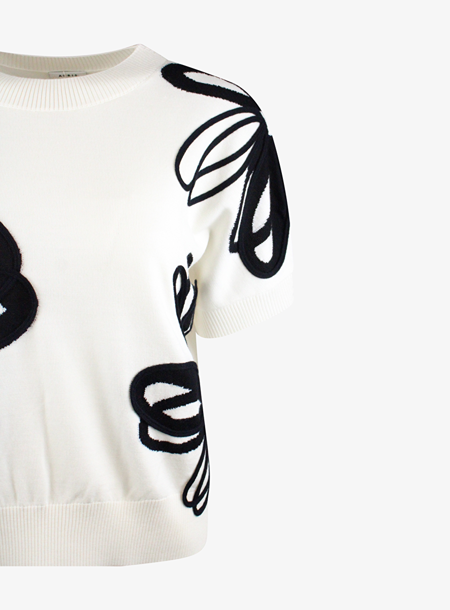 Shirt wit met bloem dessin