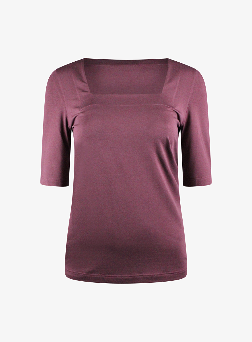 Shirt bordeaux met korte mouw en vierkante hals