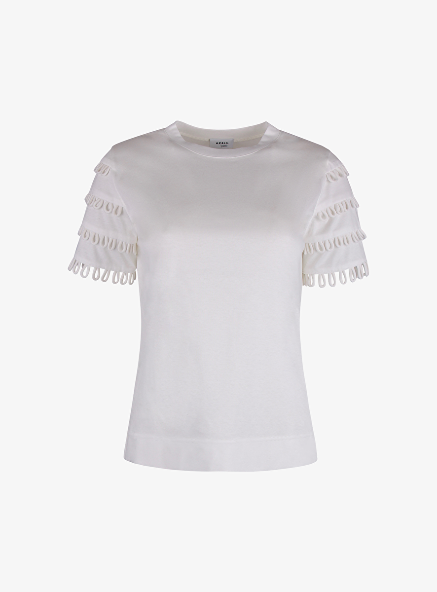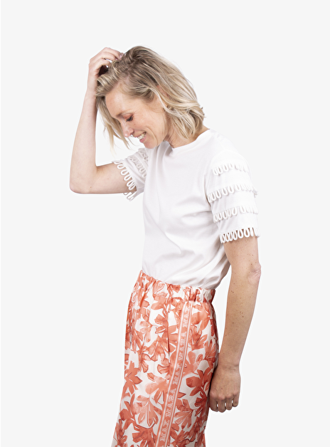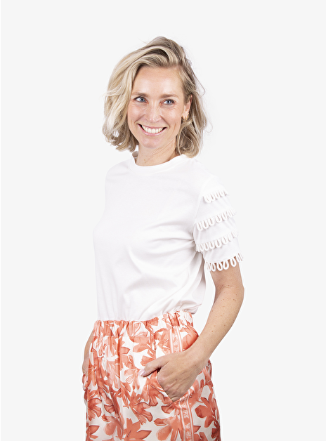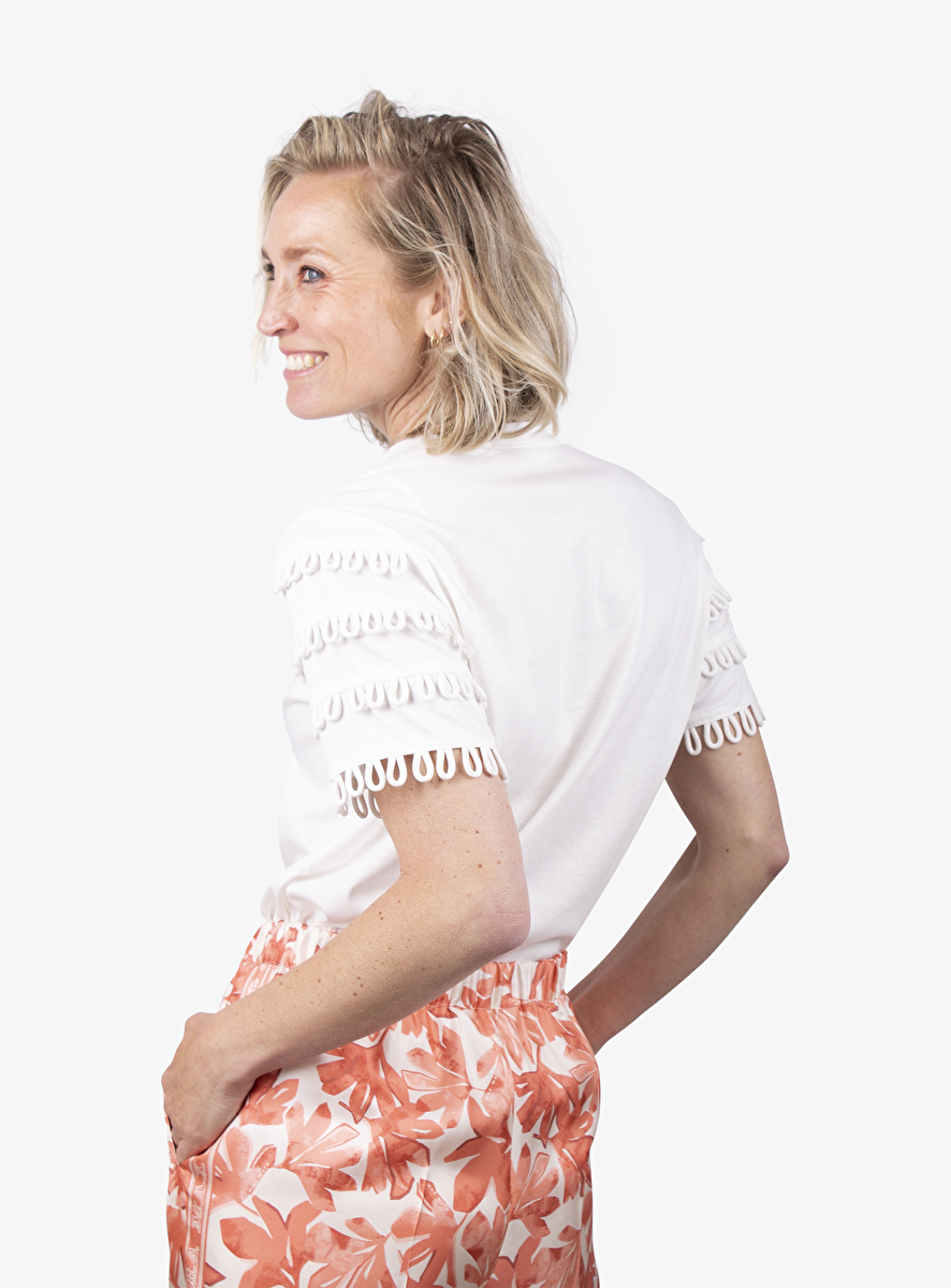 Deze basic in offwhite heeft een opvallende originele mouw verwerking.