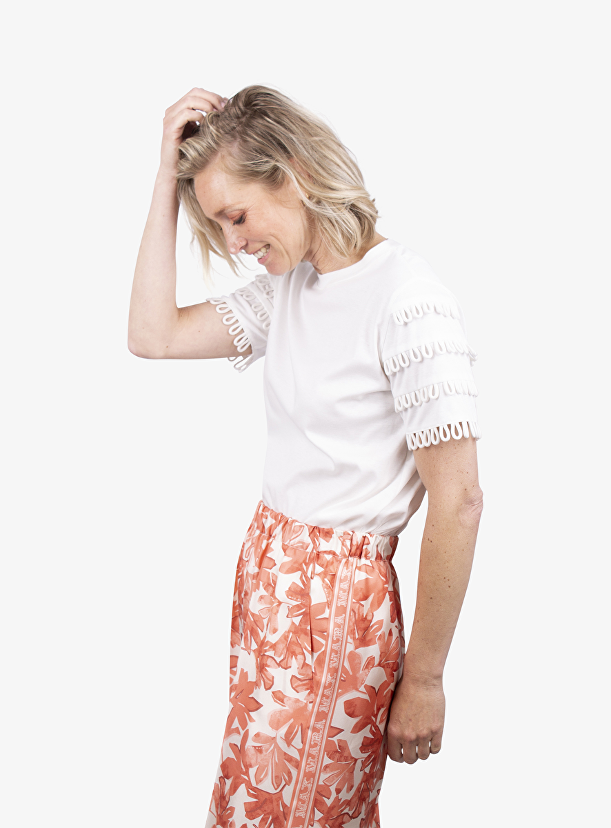 Detail: ronde hals - korte mouw - lussen op mouw - gemerceriseerde katoen (zijdeglans) -splitjes zijkant van 5cm.