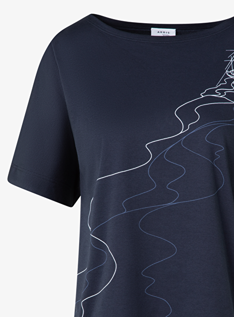 Shirt marine met print zee en zeilbootjes