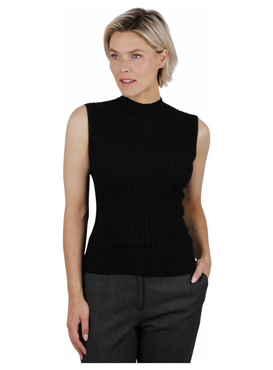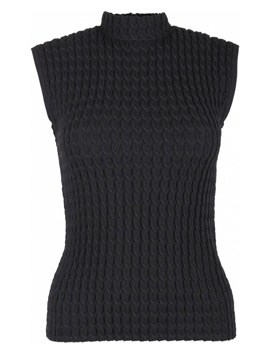 Top met col zonder mouwen met een gedraaid structuur dessin en een rits aan de achterkant.