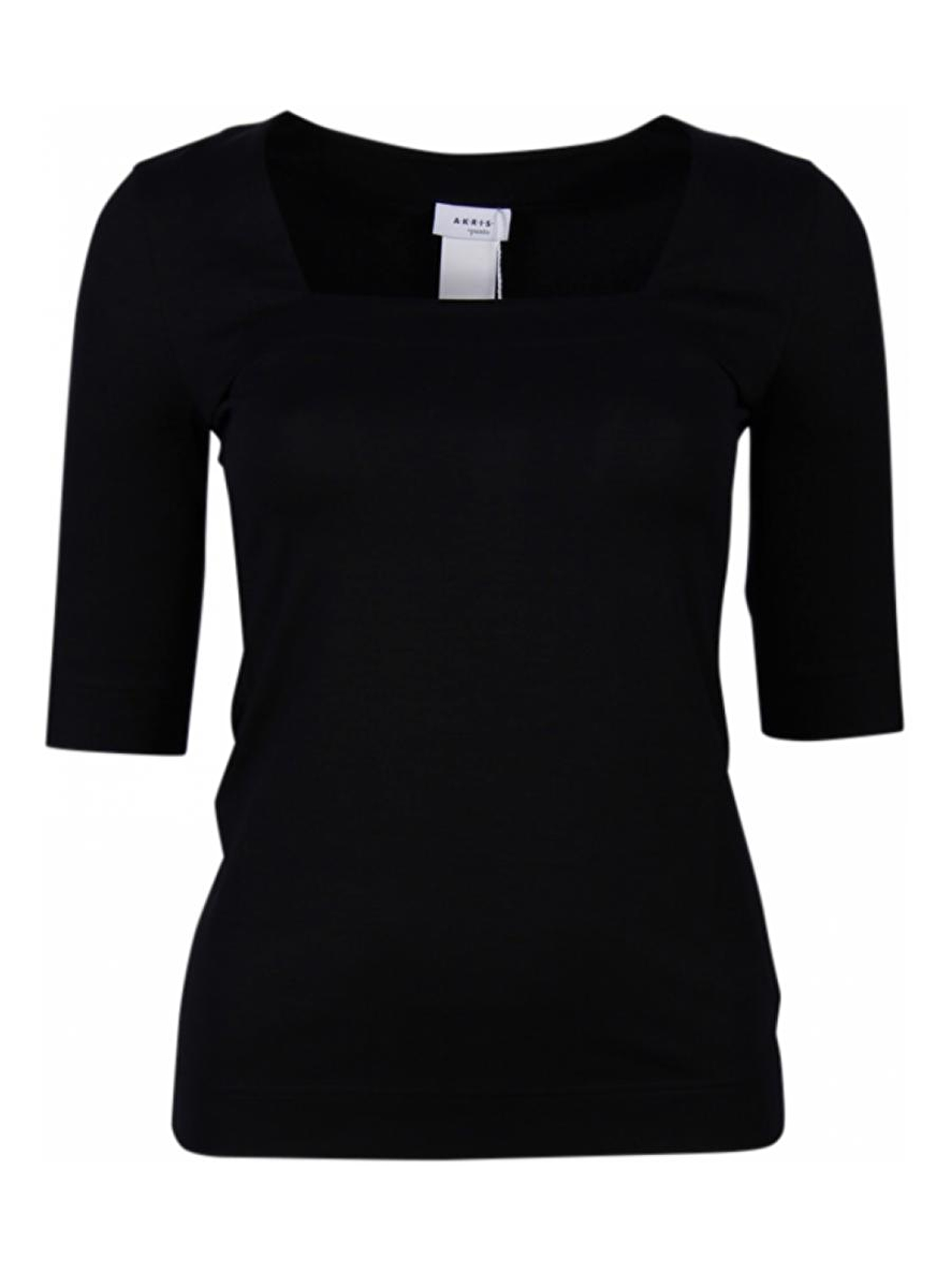 Top zwart van gemerceriseerd (glanzend) katoen met een vierkante hals is het helemaal! Slank aansluitend aan het lichaam geeft een super vrouwelijke touch. Mooi als basic.