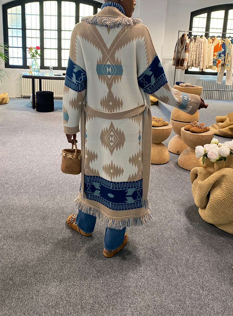 Iconic jacquard coat in chalk sand
