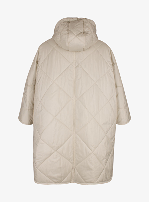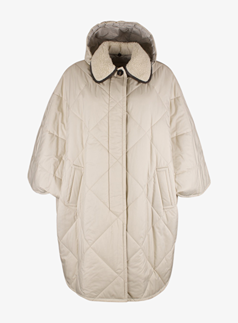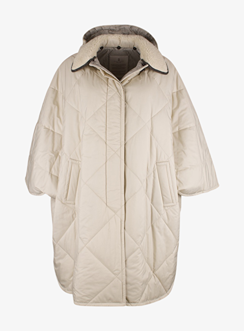 Cape jas capuchon beige met teddy kraag