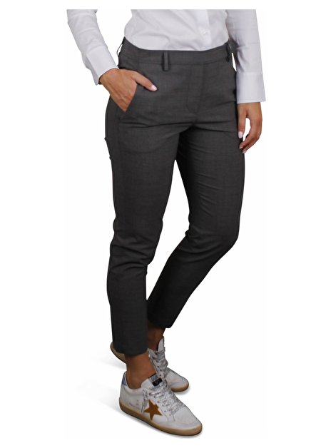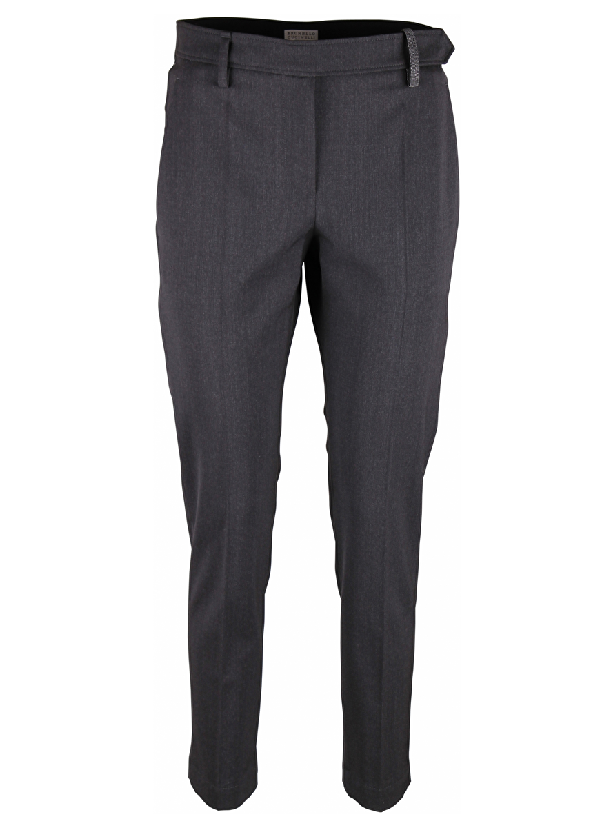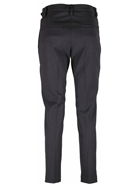 Pantalon met smoked zilverkraaltjes als ceintuur lus. Steekzakken. Blinde zakken aan de achterkant. Persvouw.
