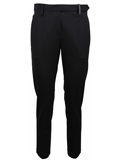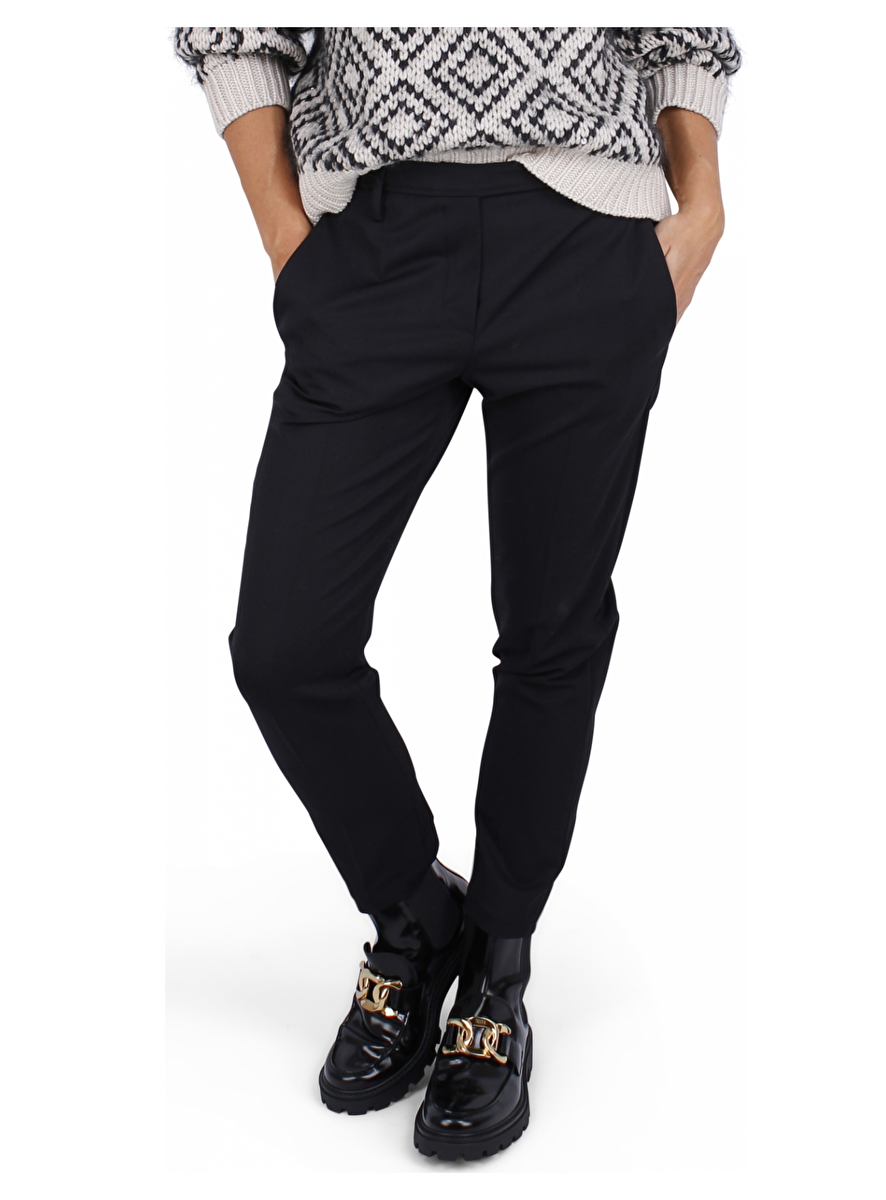Pantalon zwart met smoked zilverglitter ceintuurlus. Steekzakken - Fake zakken achterkant - persvouw.