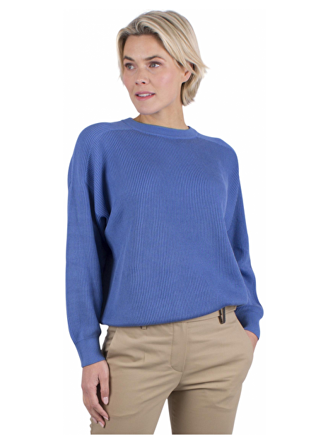 Pull met ronde hals rib gebreid. Detail in de mouw.