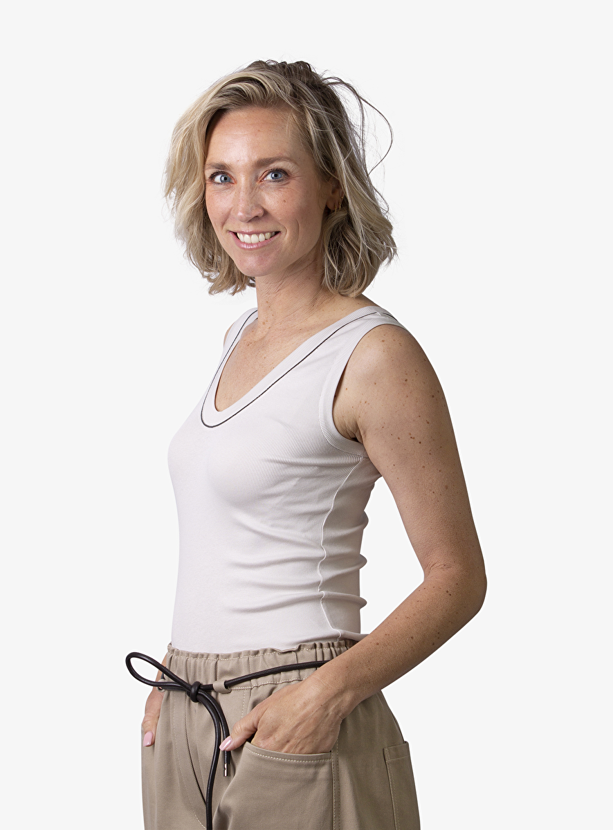 • Detail: V- hals - smoked steentjes zwart langs de halslijn.