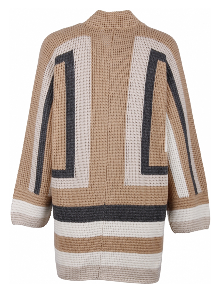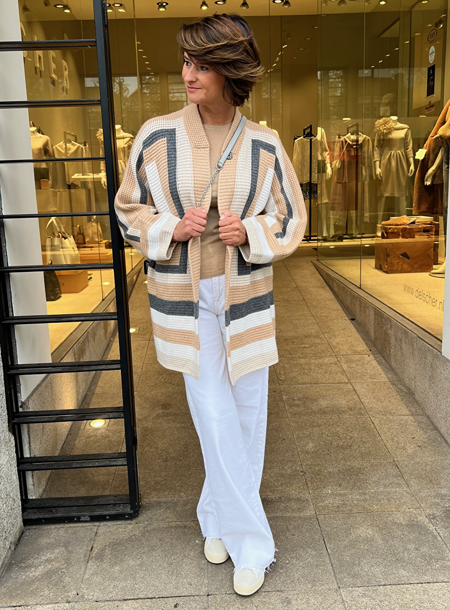 Vest blok motief beige camel grijs offwhite