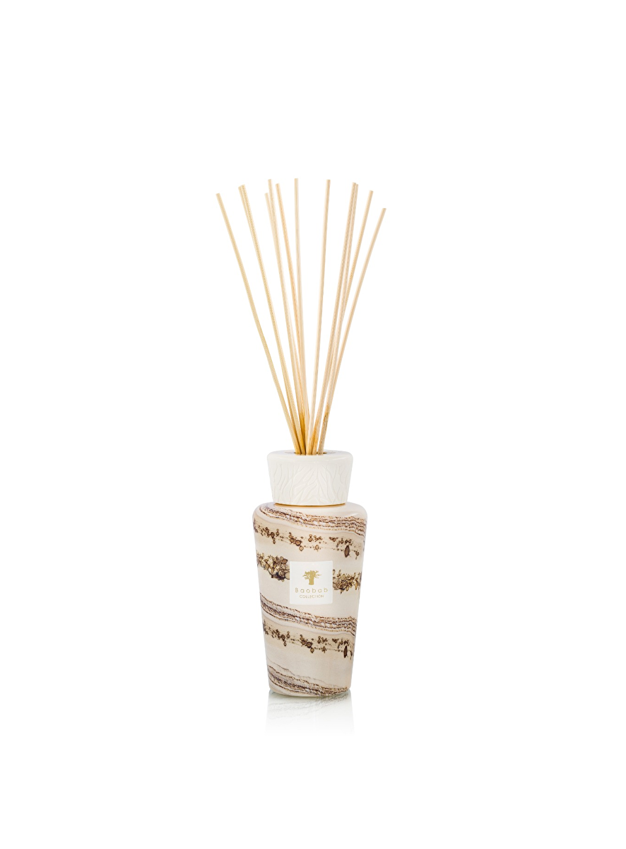 De Sand Siloli-diffuser is nu verkrijgbaar in een formaat van 500 ml en is vervaardigd met behulp van de delicate sublimatietechniek. De zachte beige en bruine tinten, geïnspireerd door de Boliviaanse woestijn, brengen een gevoel van harmonie en verfijning in elk huis.