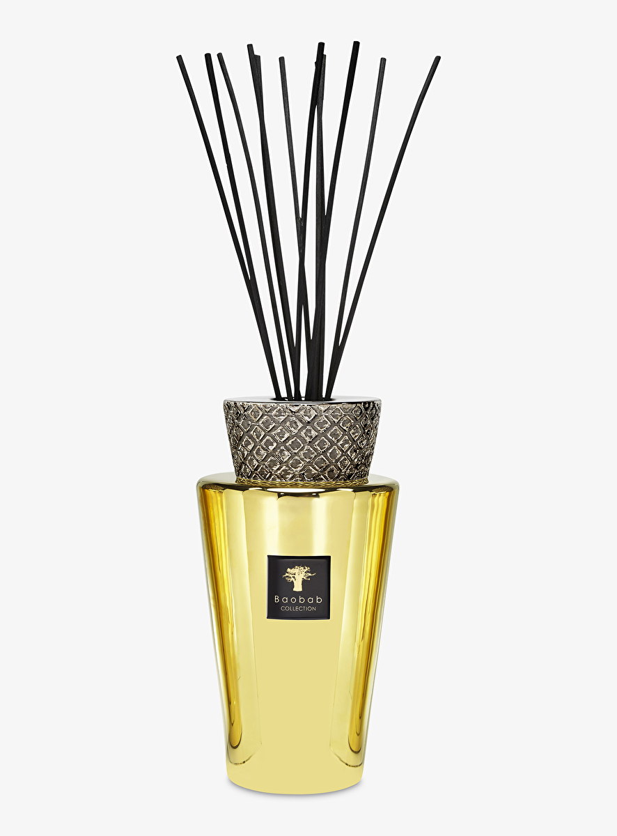 Als een sieraad in uw huis, is de parfumverspreider Totem Aurum met de hand beschilderd door glasbewerkers met kostbaar goud. Een stuk tricolor keramiek is op de bovenkant van de fles geplaatst en dit heeft een beroep gedaan op de behendigheid van onze keramische vakmensen die de verschillende emailleringstechnieken beheersen.