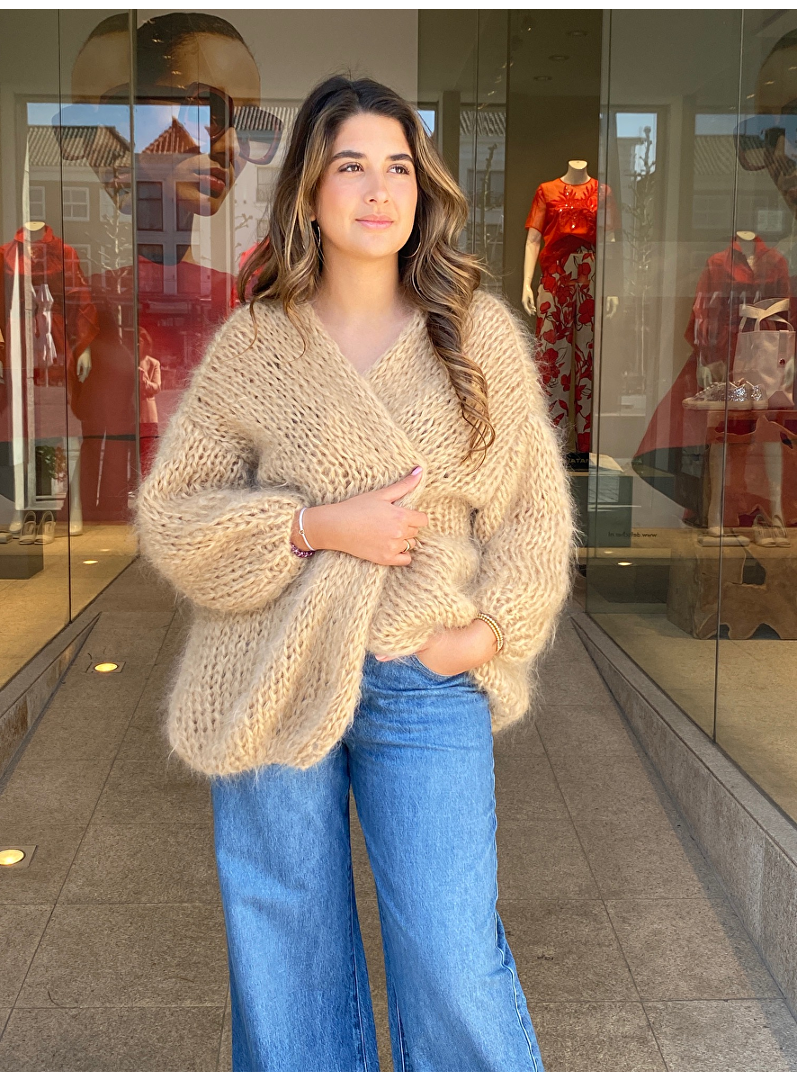Een Bernadette vest oftewel een draagbaar wolkje van puur mohair is een echte 'musthave'. Dit camel kleurige exemplaar is zeer draagbaar en comfortabel. Handgemaakt breiwerk wat eigenlijk niet in uw kast mag ontbreken. het vest is 1 maat en valt royaal.