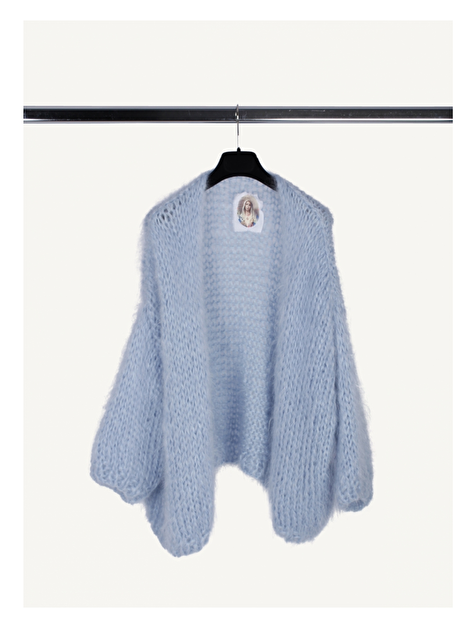 Made by Bernadette. Het Belgische merk is niet meer weg te denken. De Bernadettekes zoals ze in Belgie genoemd worden zijn zeer comfortabel en draagbaar en worden niet voor niets draagbare wolkjes genoemd. Dit lichtblauwe exemplaar bestaat uit puur mohair en is met de hand gebreid.