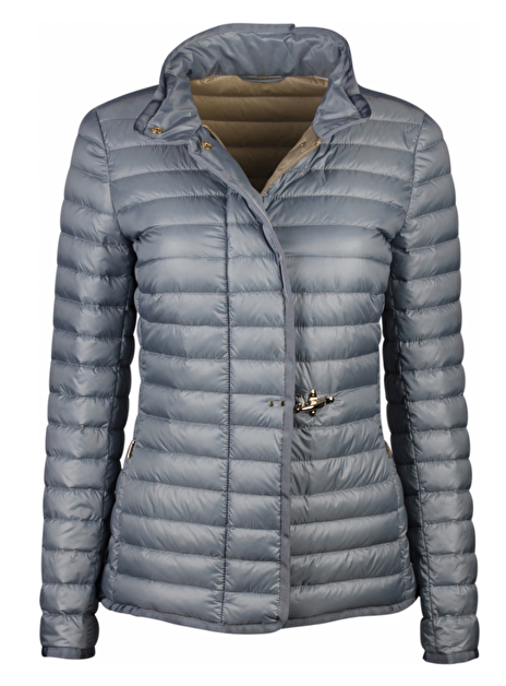 Dit jack is in een kleur blauw die moeilijk is te benoemen. Een mooie bijna jeansblauwe tint. De binnenkant is beige en de rits en haak zijn goud kleurig. Een super jack!
