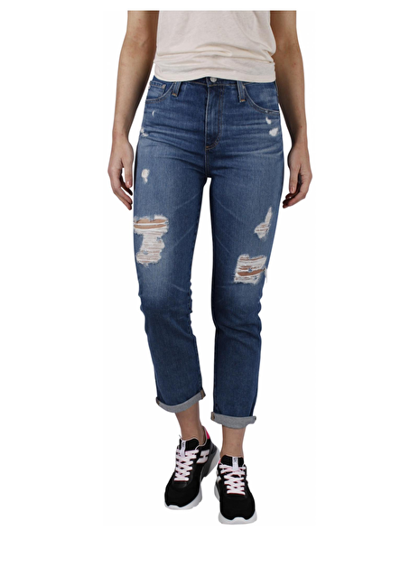 Jeans vintage destroyed look uitgevoerd in een blauwe wassing. Dit model heeft een hoge taille. Het nonchalante en stoere model heeft een mooie slanke pasvorm en is voor diverse gelegenheden geschikt. Het materiaal bestaat uit 98% katoen en 2% polyurethaan.