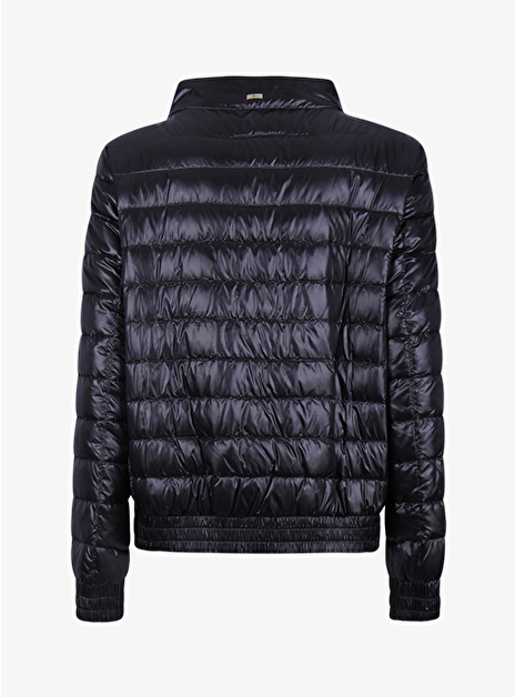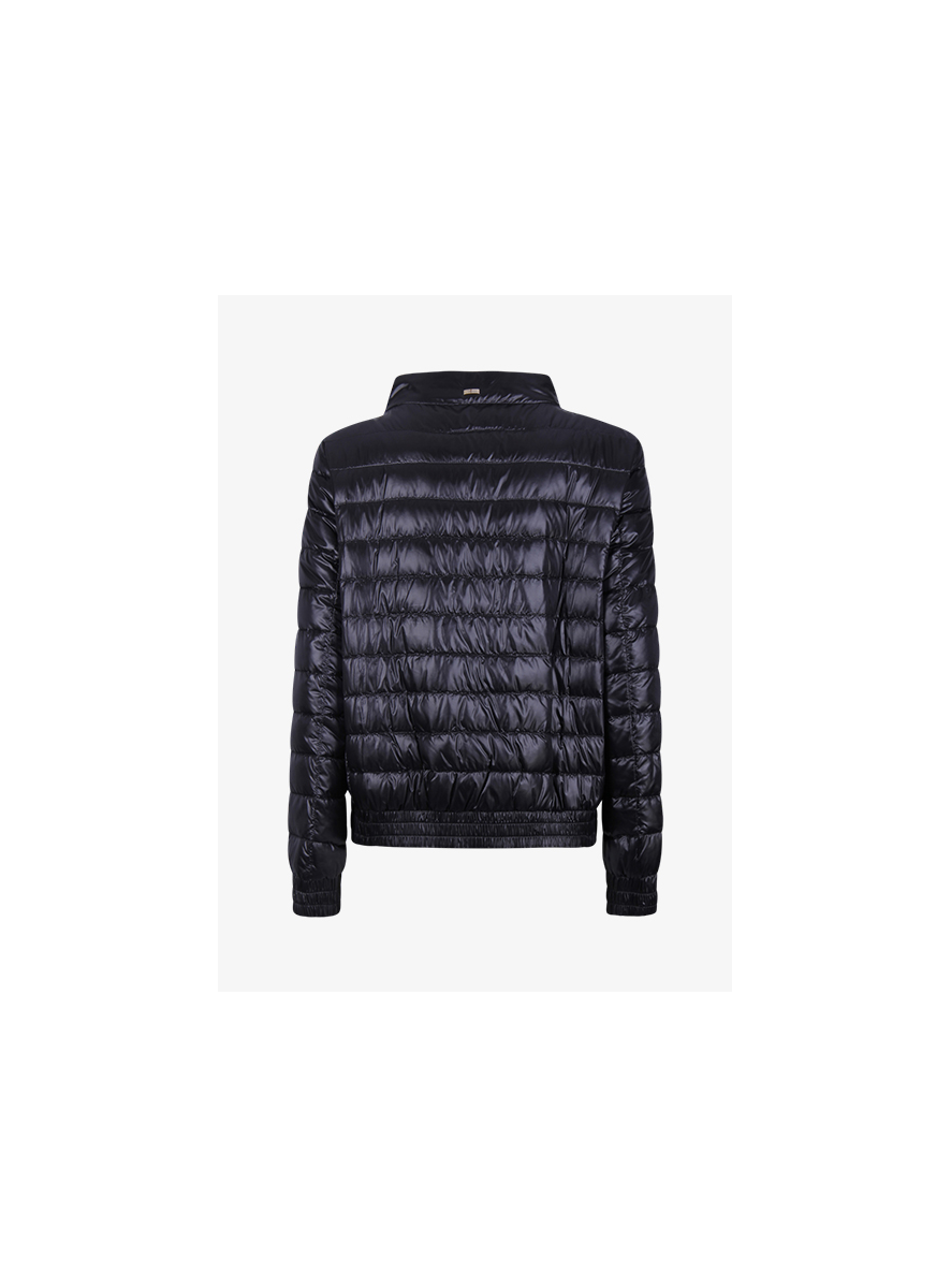 lage kraag - steekzakken - elastische zoom en manchetten - zilverkleurig merkje aan de achterkant.