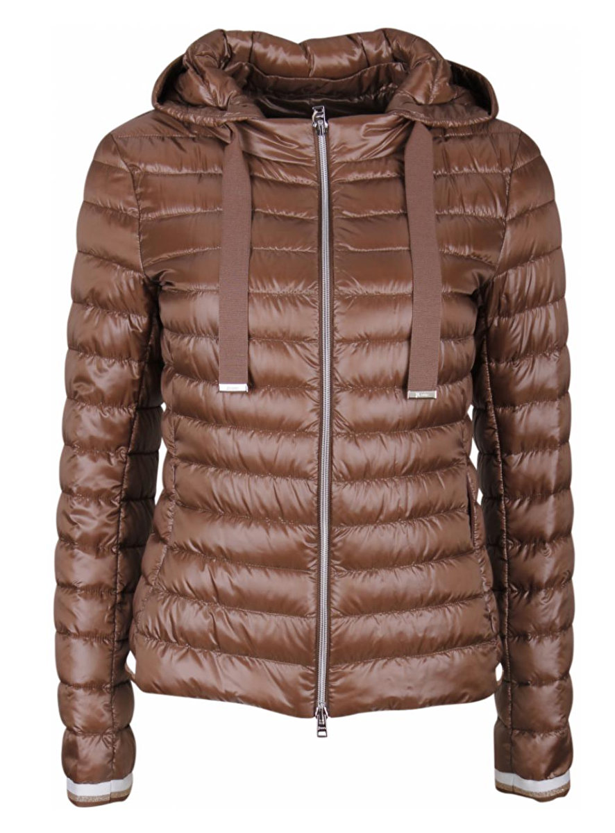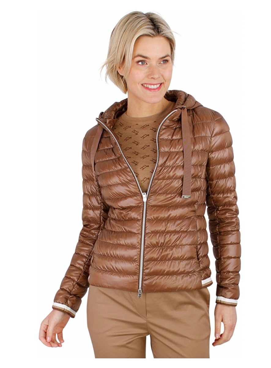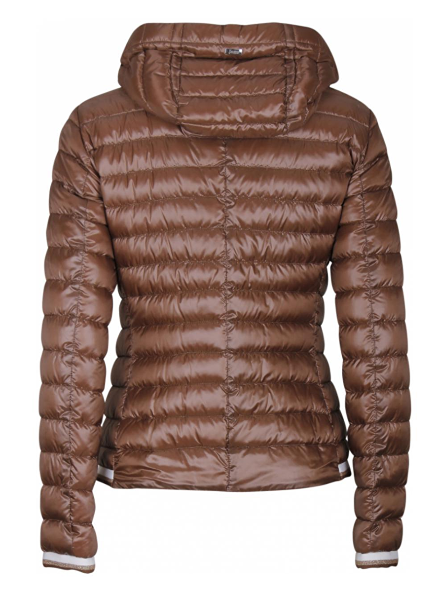 Gestept jack met afneembare capuchon en aantrek koord. Manchet mouw en achterkant zoom van de jas is afgewerkt met een wit en een goudkleurige glitterrand.