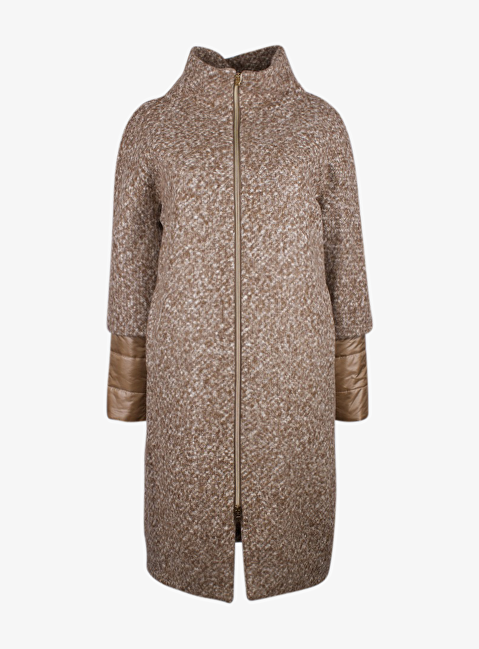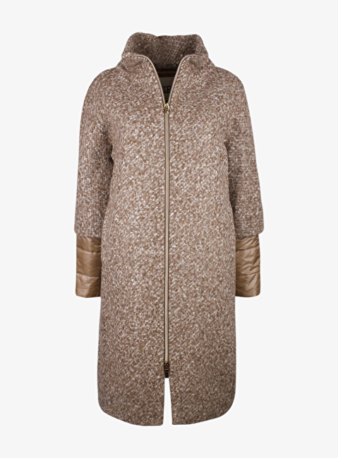Detail: korte opstaande kraag - gestepte afritsbare mouwen - steekzakken - goudkleurige rits.