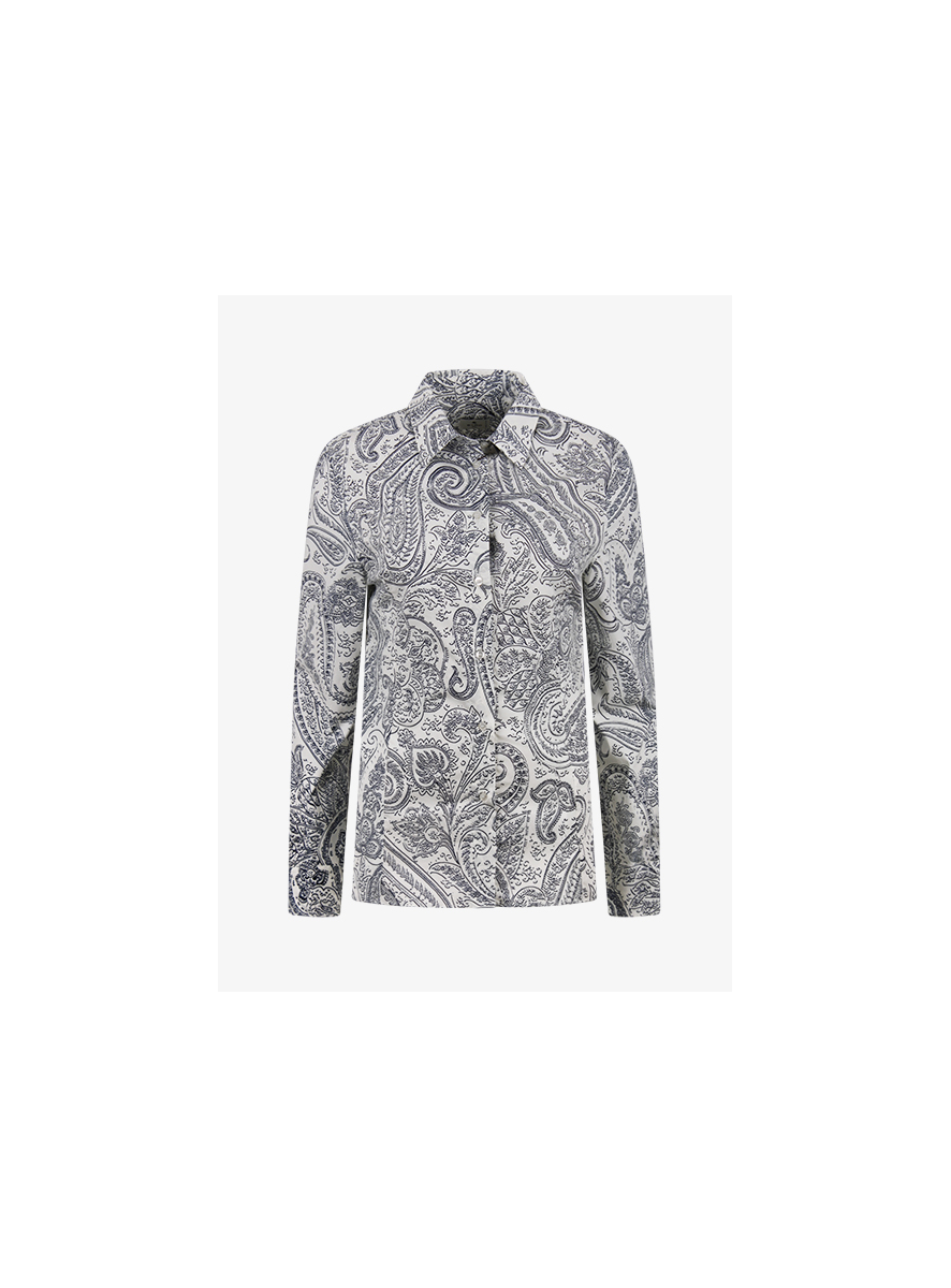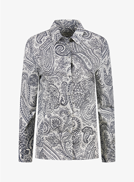 Getailleerde blouse met donker blauwe Etro print.