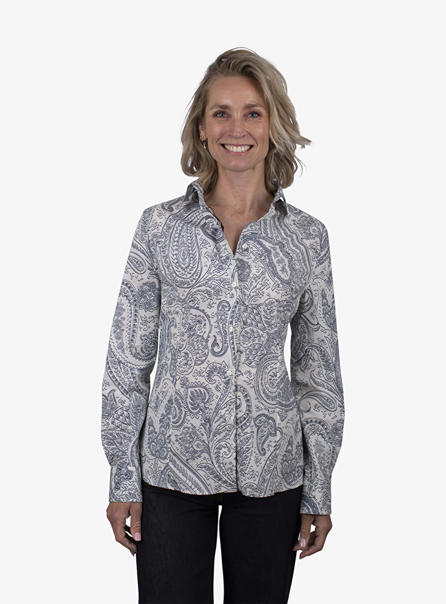 Blouse paisley print offwhite blauw