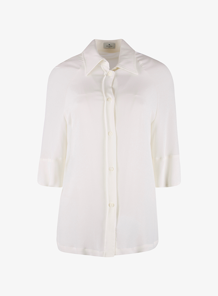 Blouse in zijde met een subtiele drab structuur.