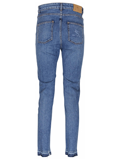 Deze jeans heeft five pockets en een high rise waist. Aan de achterkant heeft de broek een geborduurde Peagasus Etro branding. De onderkant zoom heeft een bewerkte urban rand.