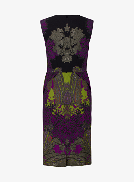 Detail: rechte snit - ronde halslijn - lange rits 55 cm aan de achterkant - dessin allover.