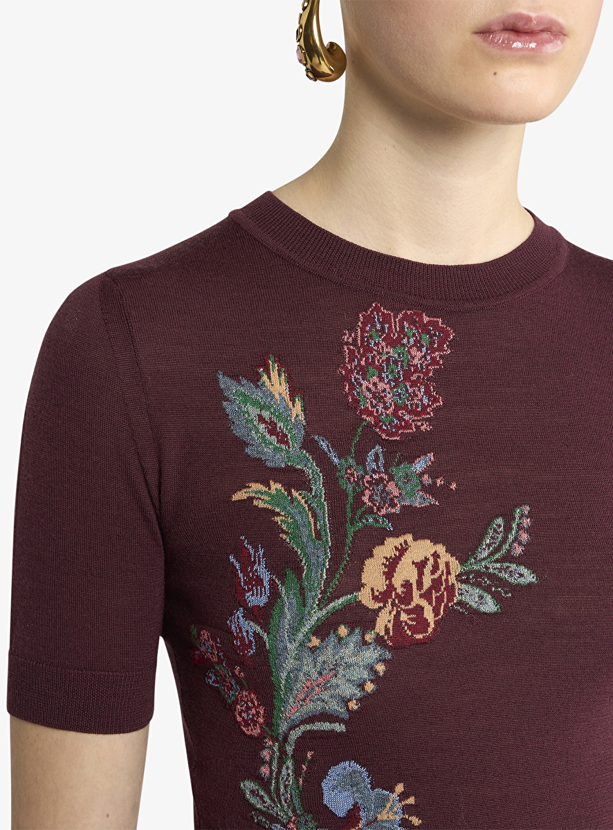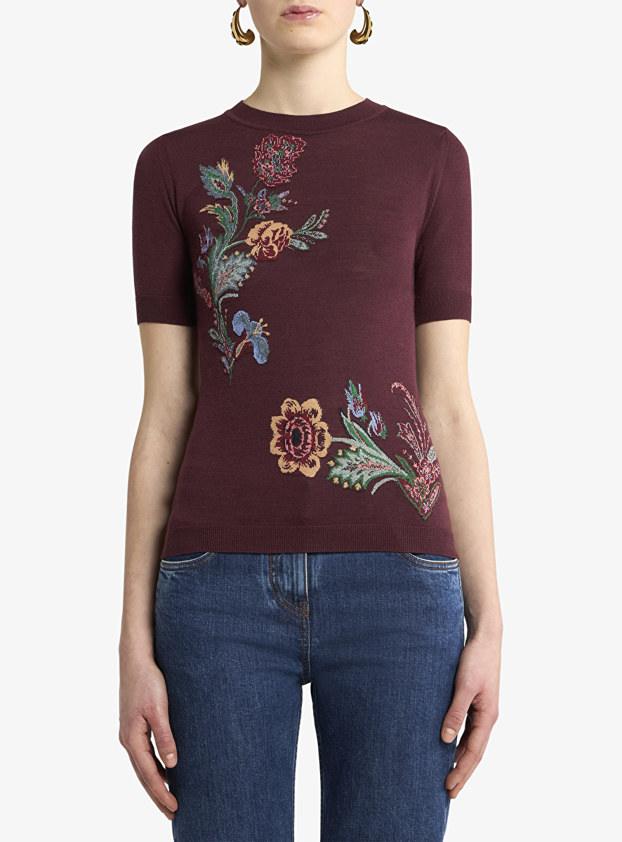 Pull bordeaux met bloem dessin