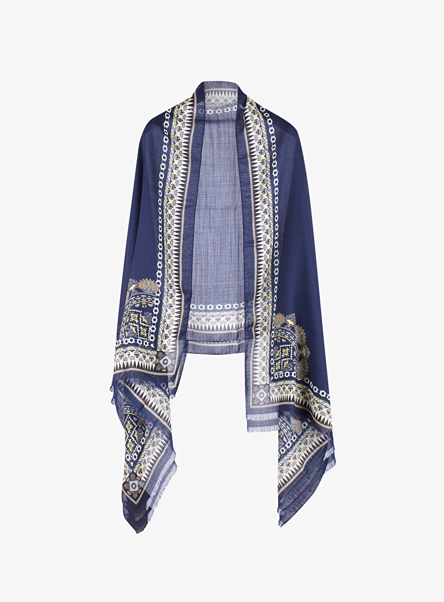 Dessin shawl afgewerkt met een abstracte dessin rand.