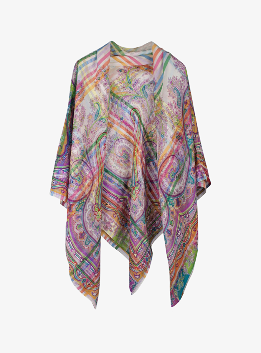 Shawl oranje, roze, paars met paisley en multicolor ruit.