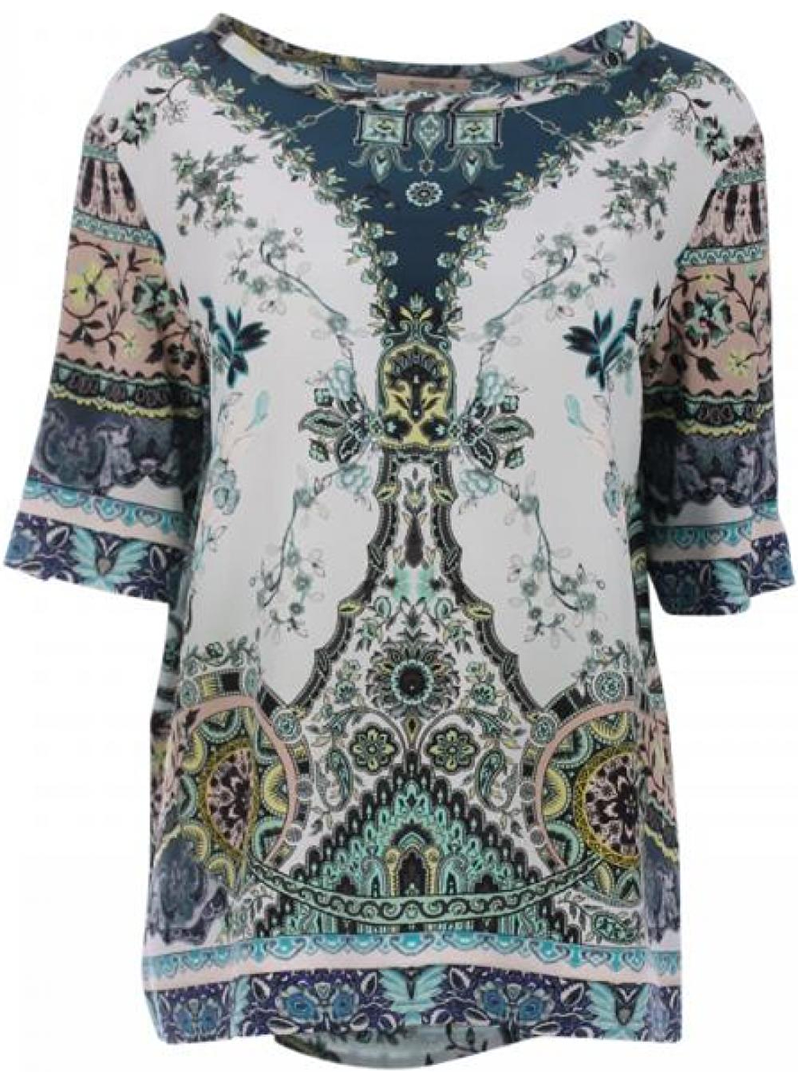 Deze zeeblauwe top van Etro past echt bij het thema ballet/dans van dit seizoen. Door het gebruik van 100% zijde ontstaat er een heerlijke luchtige en beweegbare top met een prachtige pasvorm. En zoals u gewend bent van Etro heeft deze top een prachtig dessin en kleurstelling. Dit is weer zo een top waar u naar blijft kijken en waarin u steeds weer nieuwe patronen ziet. Deze top straalt luxe en elegantie uit en kan zowel op een jeans als pantalon worden gedragen.