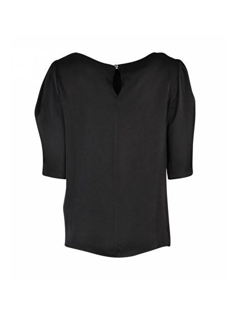 Mooie eenvoudige zwarte top in 100% viscose. De top is nonchalant en heeft plooitjes op de schouder. De mouw is kort op de elleboog.