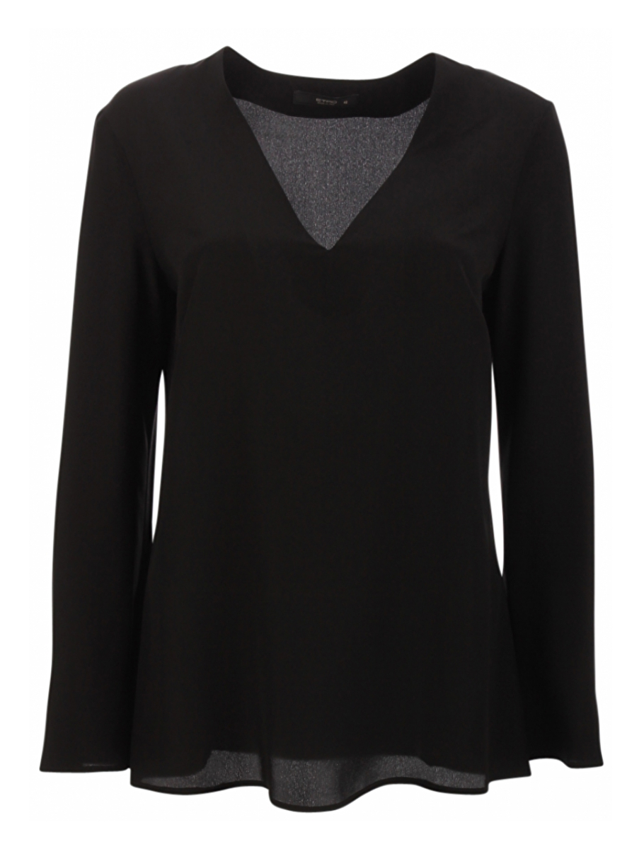Etro staat bekend om zijn prachtige kleurencombinaties en dessins maar heeft ook een mooie basiscollectie zonder dessins. Deze top is daar een mooi voorbeeld van. Een losvallende top met wijduitlopende mouwen en vrouwelijke pasvorm. Doordat de top uit 100% zijde bestaat valt deze erg soepel en is de top ook heel draagbaar.