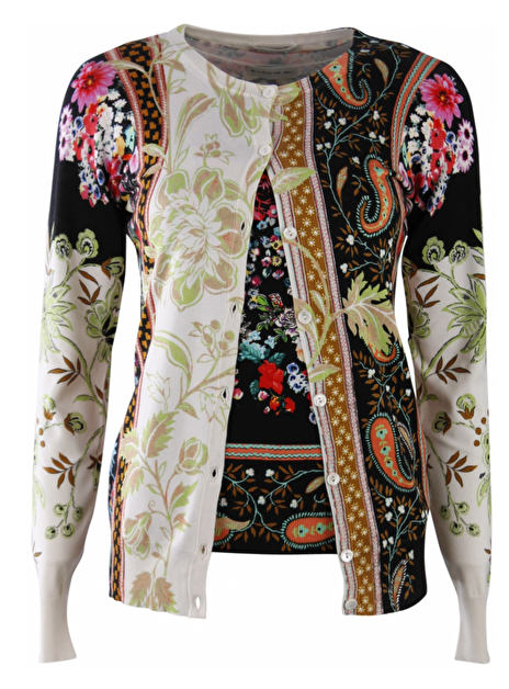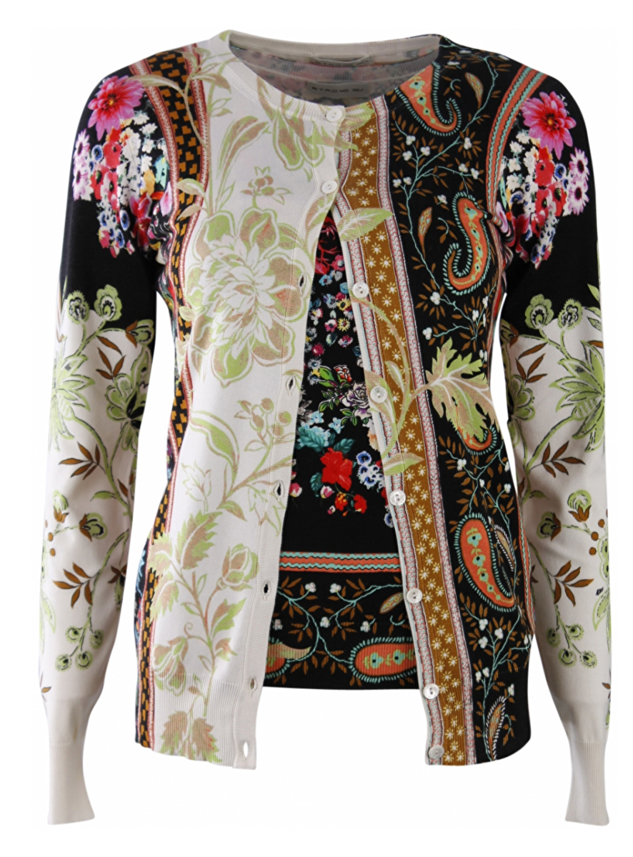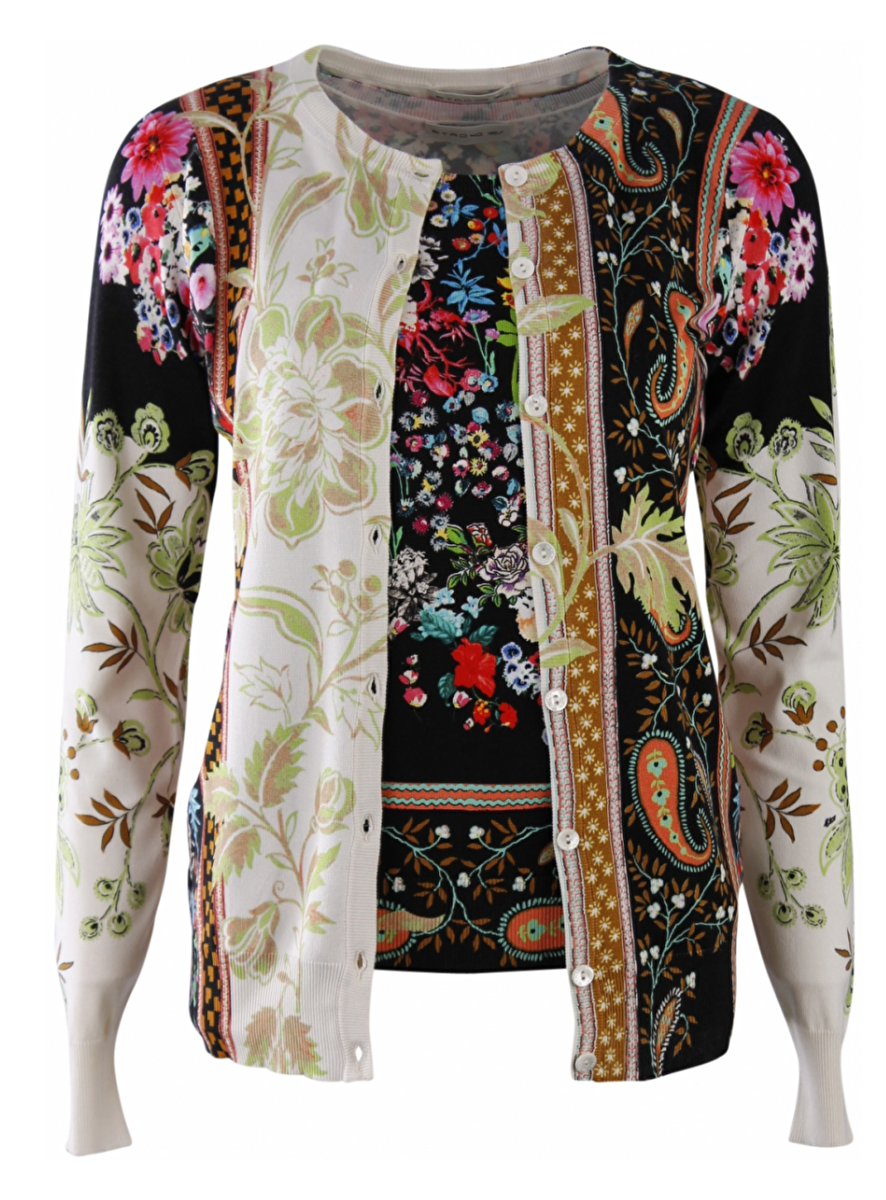 Dit soepel vallende twinset heeft een ronde hals en een kleurige bloemenprint. De hoofdkleur is offwhite met zwart waardoor de kleurige print mooi in het oog springt. Kwaliteit 85% zijde 15% elasthan.