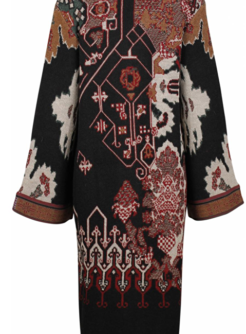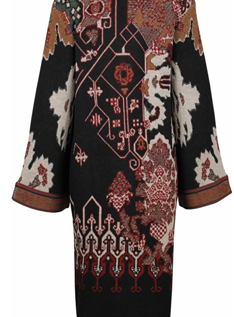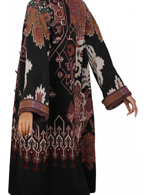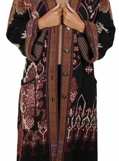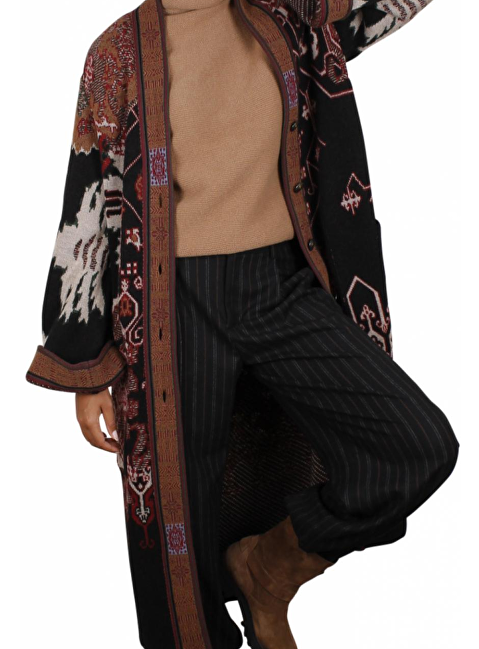 Wat een prachtig vest in kimono style van Etro! Het lange vest heeft de multi kleuren van een Indian Summer. Met het mooie oosterse dessin echt een eye-catcher. Het vest heeft vier koperkleurige schildknopen en is afgezet met een structuur bies die ook terug komt aan de kimono mouwen. She's the ultimate beauty onder de vesten!
