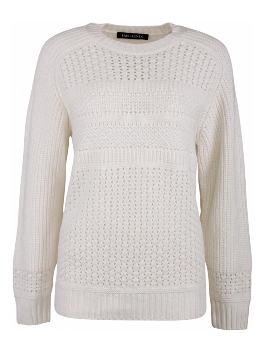 Zachte pull Altiha cashmere in white open gebreid met ronde hals.