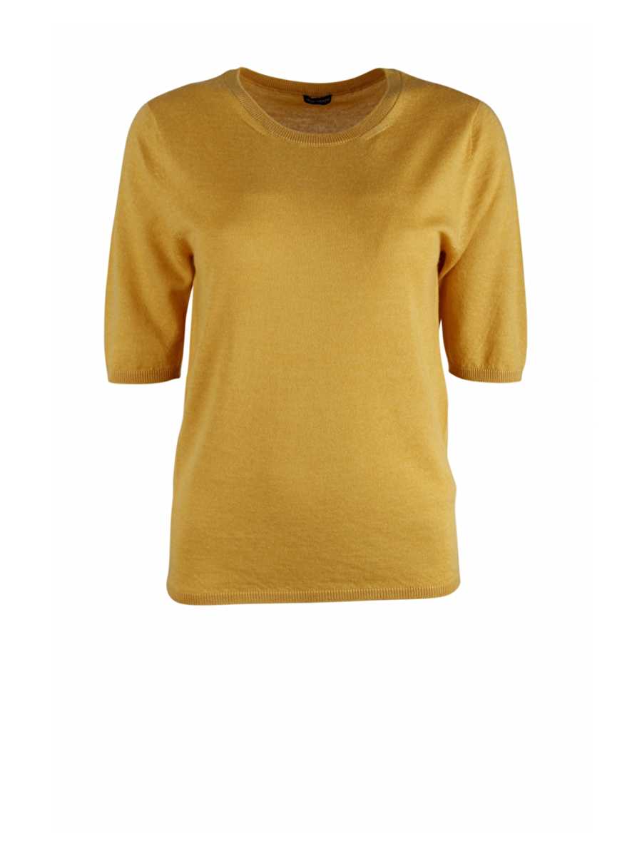Basic cashmere pull met ronde hals en korte mouwen.
