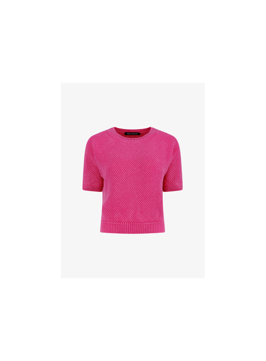 Detail: ronde hals - wafeldessin gebreid - korte mouwen.
