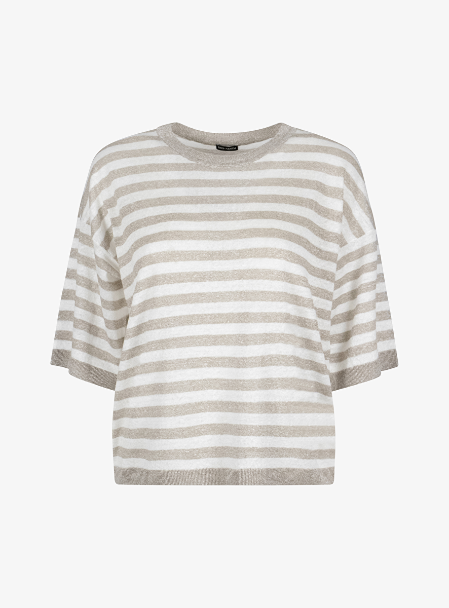 Pull Venera beige wit streep korte mouw