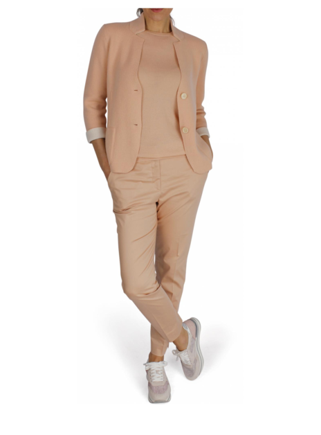 Met dit mooie peach kleurige vest heeft u een top stuk van Iris. Het model is heel fijn afgewerkt in 100% zacht cashmere. Aan de voorkant zitten twee pocket zakken en het vest sluit met twee knopen en is licht getaïlleerd. De mouw kan heel leuk omgeslagen gedragen worden zodat de offwhite binnenkant zichtbaar is.