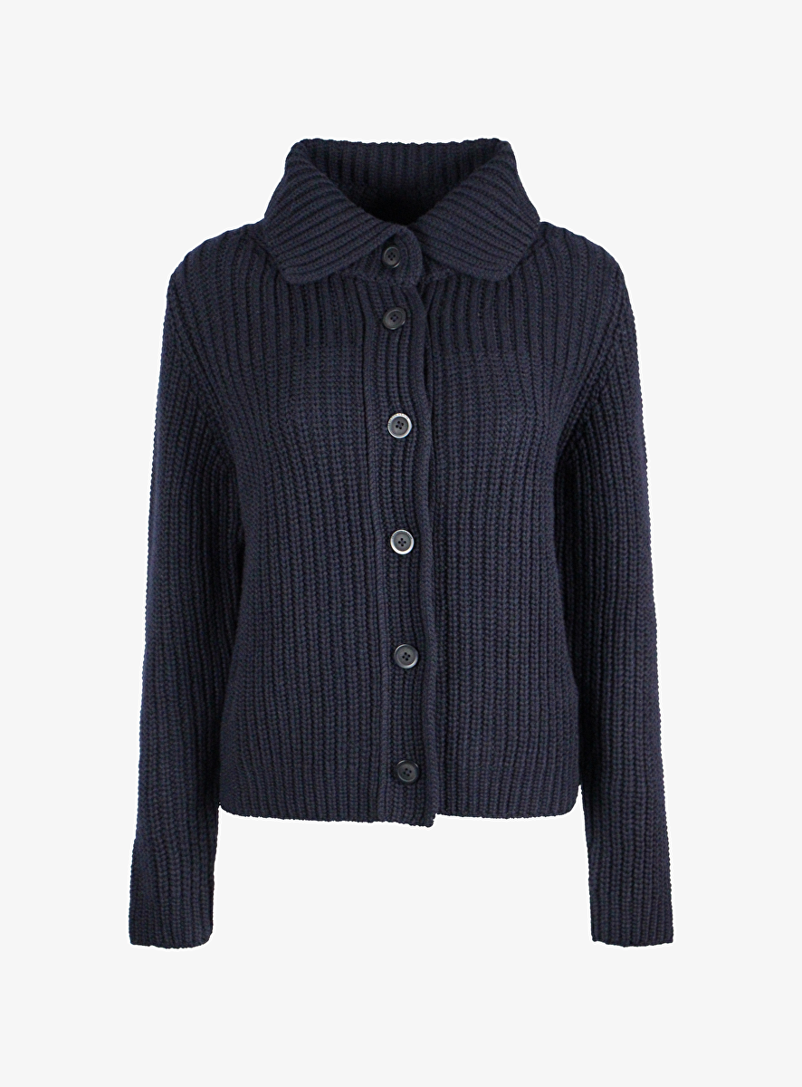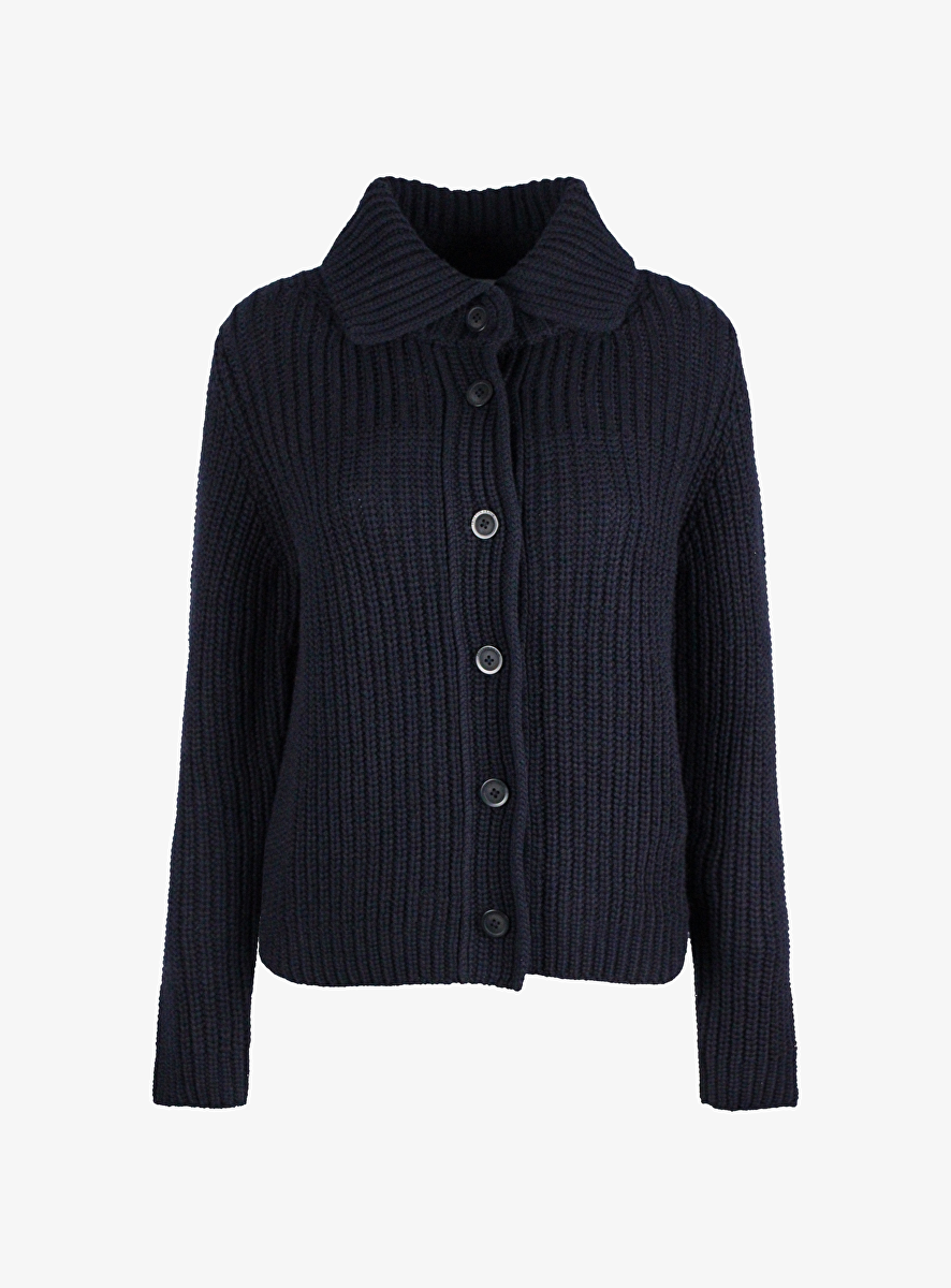 Vest cashmere artemisia navy met kraag