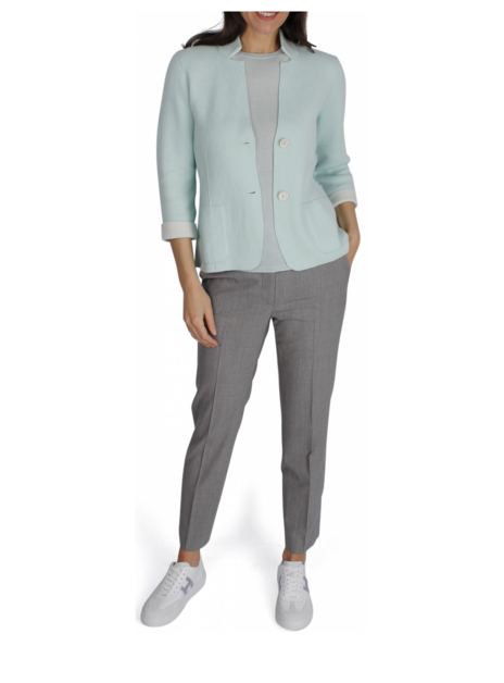 Dit mintkleurige vest is heel fijn afgewerkt in 100% zacht cashmere. Aan de voorkant zitten twee pocket zakken. Het vest sluit met twee knopen en is getaïlleerd voor een vrouwelijk silhouet. U kunt het vest mooi combineren met bijvoorbeeld andere topstukken van Iris v Arnim. De mouwen kunnen omgeslagen worden en dan komt er offwhite tevoorschijn.